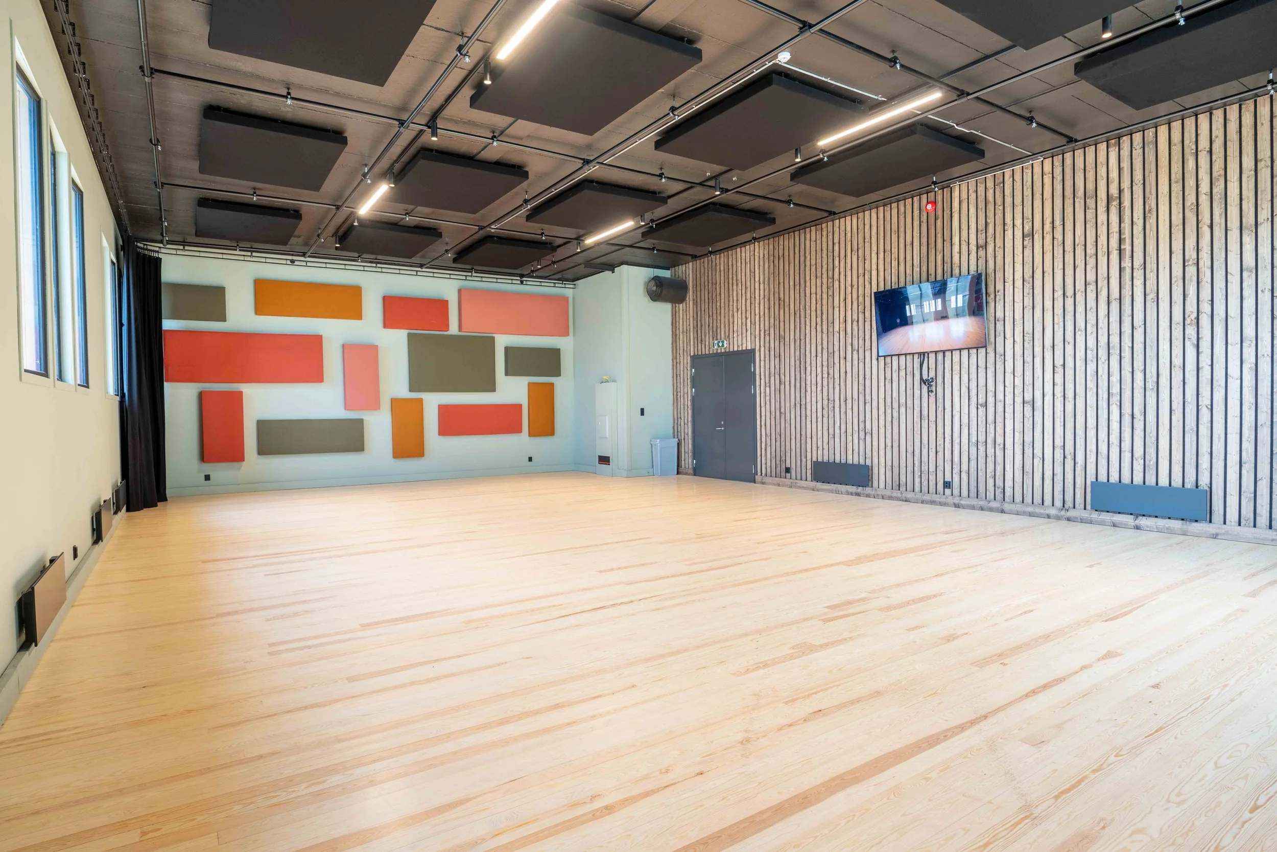 Designed and acoustically treated for professional rehearsals, tour preparation, creative production, dance, photography and more.